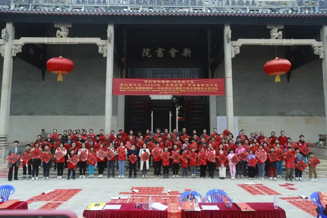 为丰富人民群众的节日文化生活,弘扬中华优秀传统文化,营造传统节日祥和欢乐的气氛,并更好地联系群众、做好惠民服务,由区文广旅体局、区文联、区美术馆、区博物馆、区书法协会、新会“柑柑好”联合主办,各镇街文体中心协办的“‘柑柑好’特约‘百福迎春’2025新会区和谐春联送万家暨‘我们的中国梦’文化进万家活动”在2025年1月1日上午九点半在新会书院启动。这是文旅部门连续十七年文化惠民的品牌活动,今年得到了“柑柑好”特约支持,更好地提升了活动的品牌影响力。