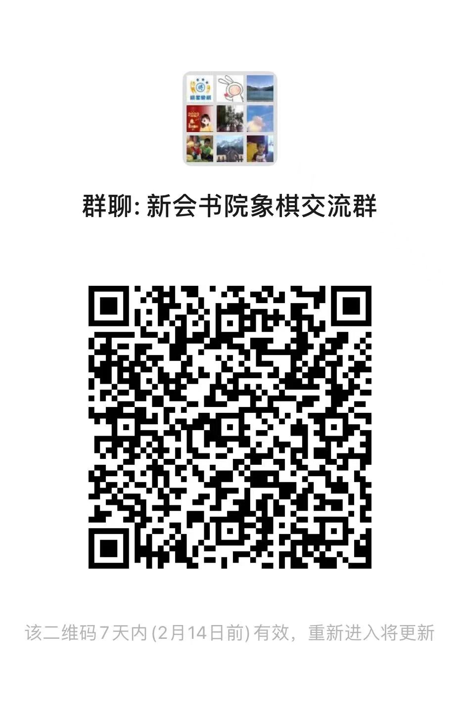 活动简介:为传承中国象棋文化,丰富少年儿童节日精神文化生活,引导其践行社会主义核心价值观,特在春节期间举办象棋比赛。目前此项活动已完成招募,共有40位同学成功报名参加。欢迎大家年初三前往新会书院一睹小棋手们的风采!