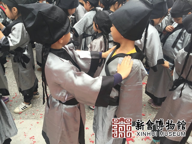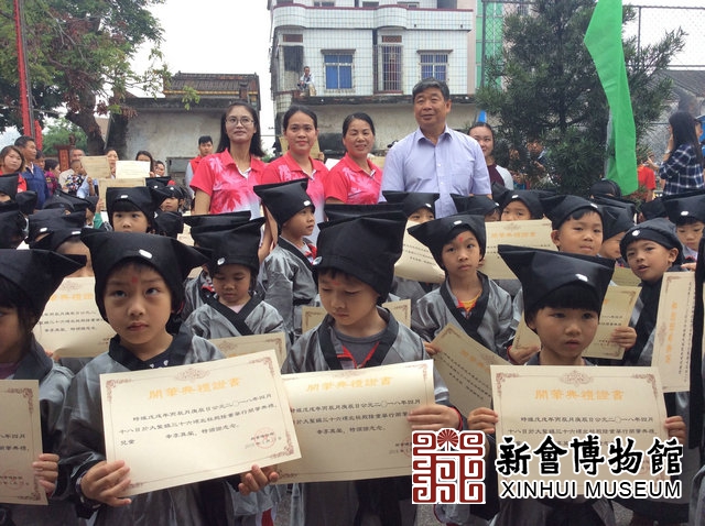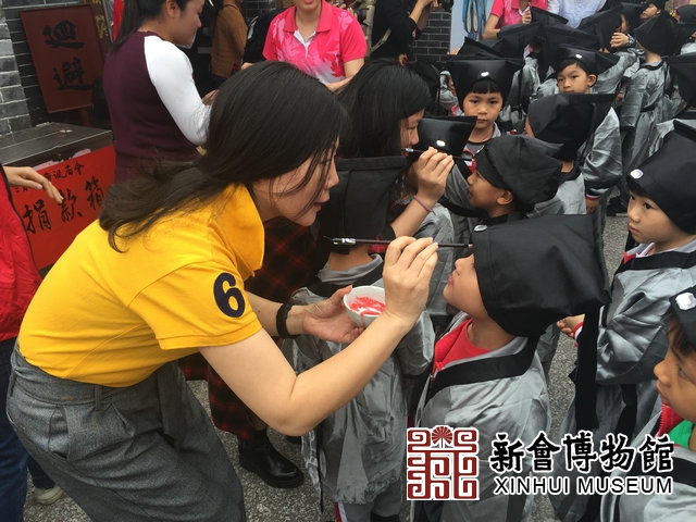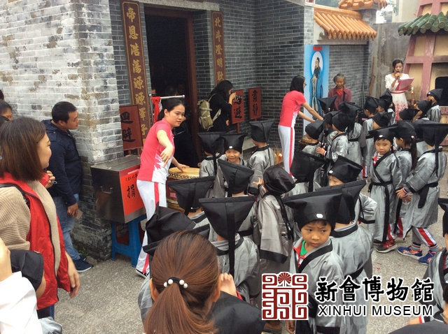 为大力弘扬中华优秀传统文化,培育和践行社会主义核心价值观,进一步巩固创文成果,从小培养学生勤学苦习、尊师孝亲、仁爱处世等优良品德,增强道德教育的仪式感和庄重感,新会博物馆与大鳌镇中心小学举办三月三北帝诞庙会暨“开笔礼”仪式。