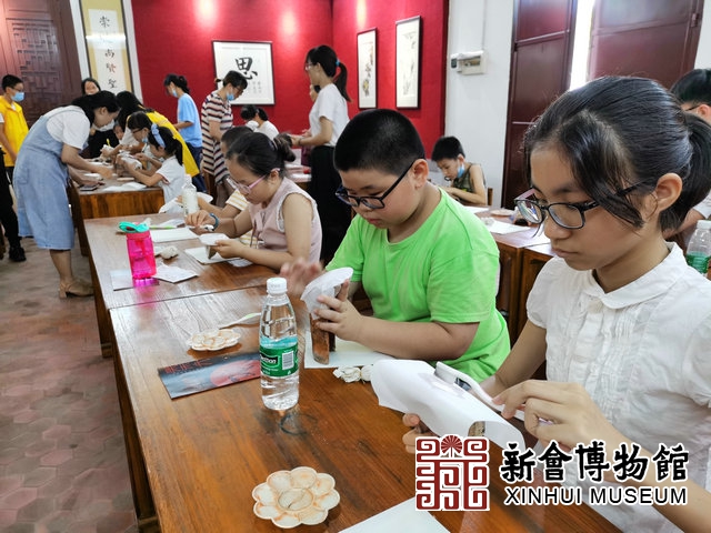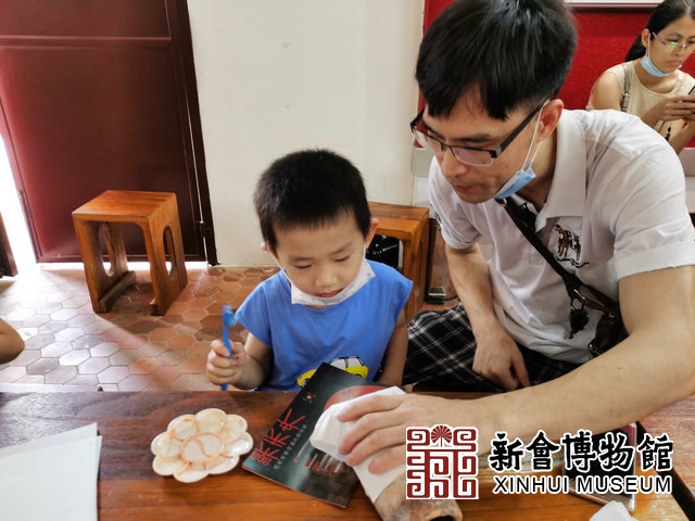 6月13日上午 ,由新会博物馆主办的新时代文明实践活动:“乐未央”瓦当拓片拓印体验活动在启超国学堂举行。本次活动是“乐未央”汉代画像砖拓片精品展的延伸活动,活动开始前,参加活动的同学们在老师的带领下参观了拓片展览。