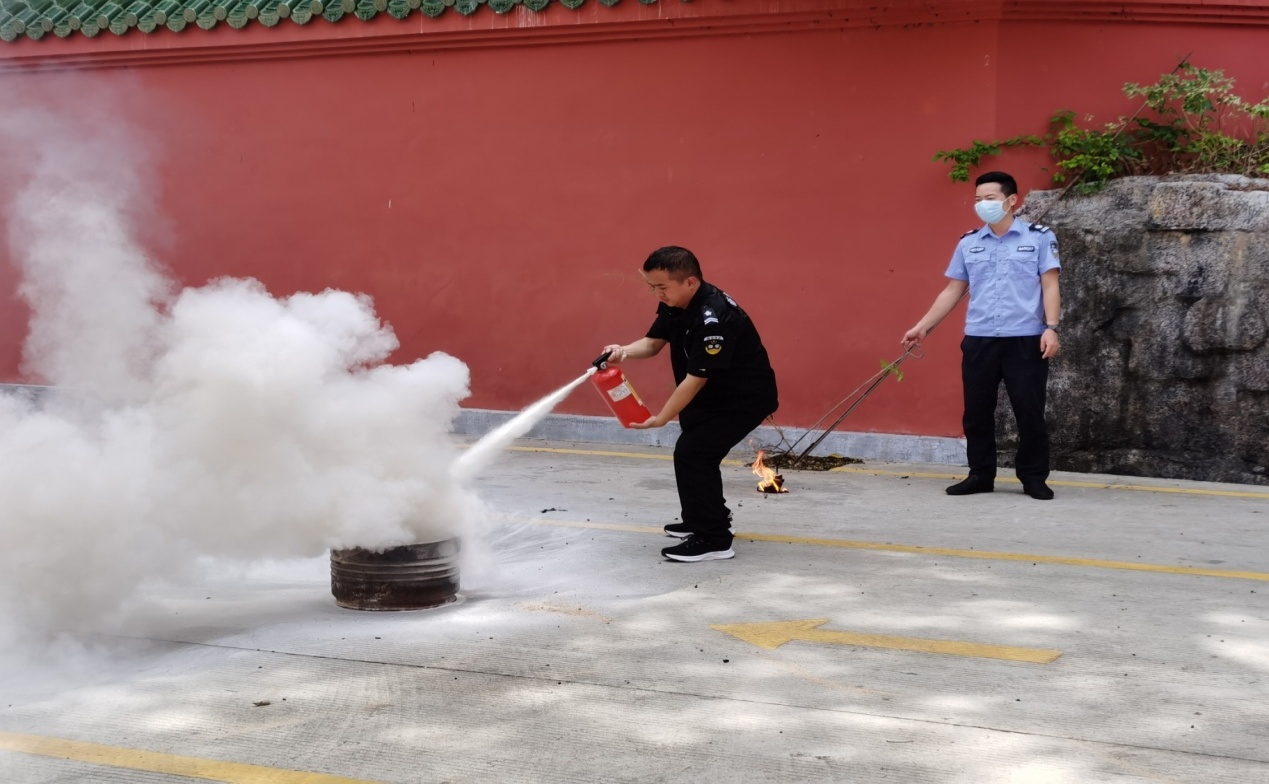 培训学习结束后即刻进行消防演练,何教官详细讲解了灭火器的使用方法以及在使用过程中的注意事项,力求每一个参与演练的人都正确掌握方法。