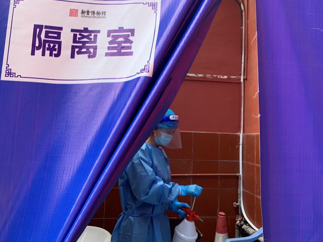 消防演练结束后,博物馆还马上进行了疫情防控演练。演练主要是针对目前国内疫情的多点爆发,形势严峻复杂。必须强化我馆对疫情防控的应急处置意识,全面提高我馆的协调和应急反应能力,切实做好公众场所免费开放的疫情防控工作。